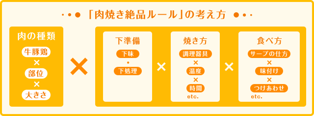 大きさによって、お肉の旨みを引き出す方法は実に100を超えるといわれています。