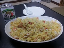 昨日余ったカニで予定通り、「カニチャーハン」を作りました。