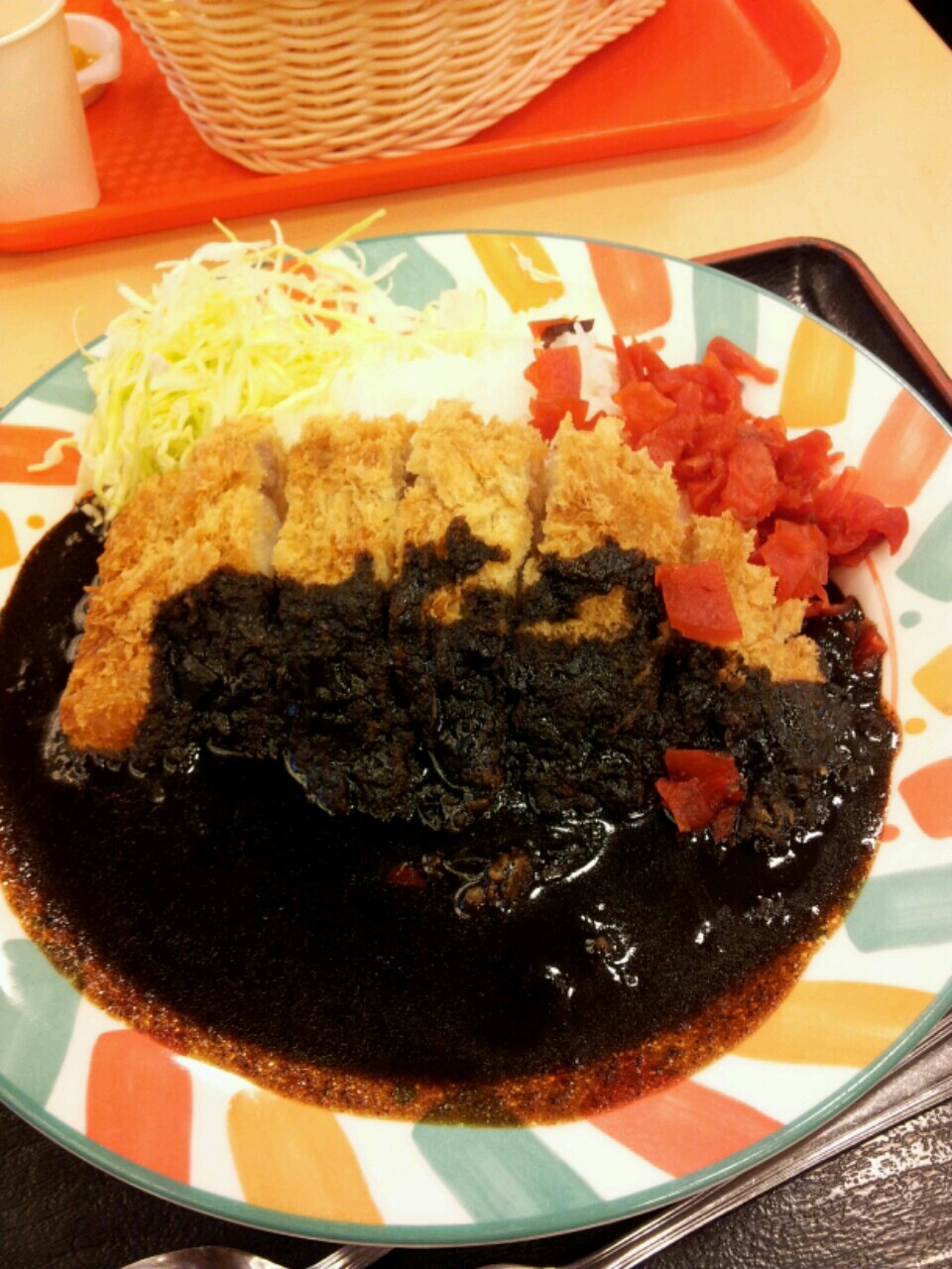 黒い色のカレーが濃厚で少しソースの味付けがした気がします。