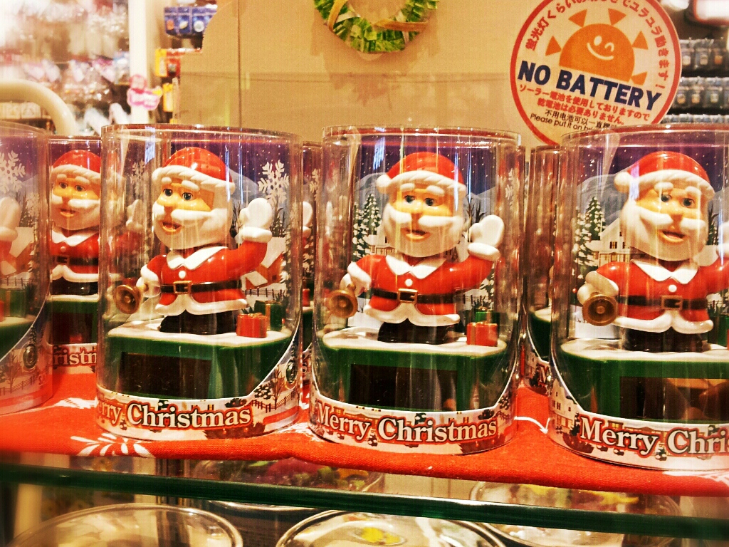 サンタさんの首がソーラー電池で動いてます。