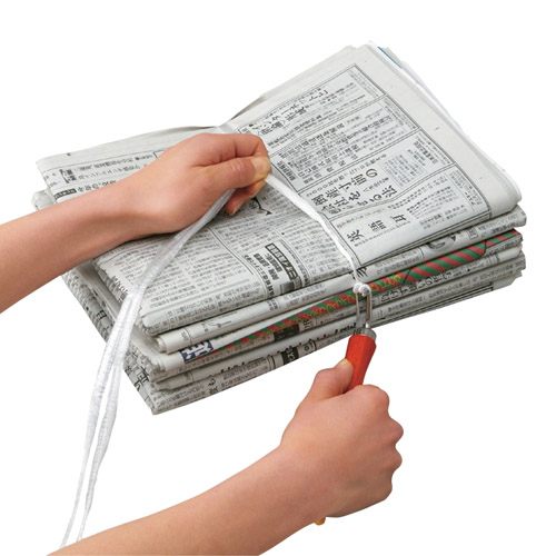 手順としては新聞等にヒモを通す、ヒモにひっかけて回すだけ!