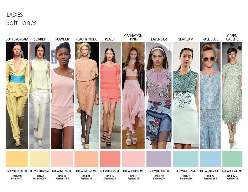色調も高彩度は減少し、低彩度とニュートラルが増加し、春夏でも原色の鮮やかな配色は
